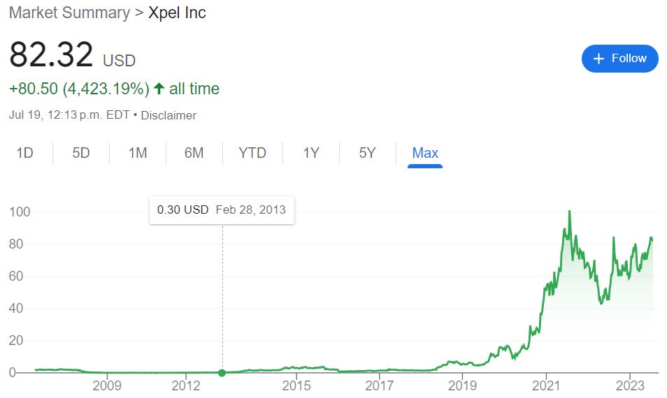This MicroCap Success Story happened to a DIY investor named Jason Hirschman who invested early on in Xpel Inc., a company that sells protective films and coatings, primarily for cars; automotive paint protection film, surface protection film, automotive and architectural window films, and ceramic coatings.